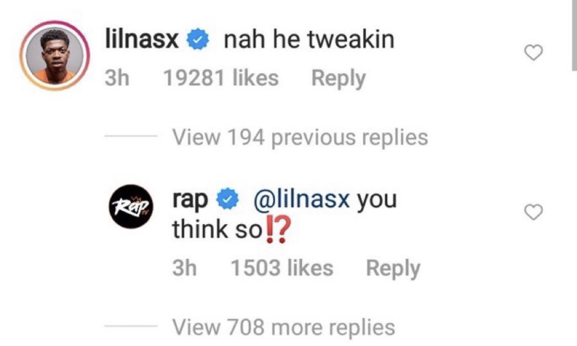Nah he tweakin Lil Nas X responded in the comments thus sparking a meme that has since taken over Instagram. 20 votes 17 comments. 263k members in the ChiefKeef community.