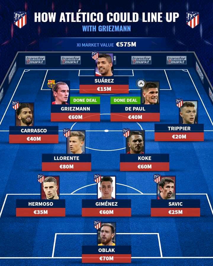 Atletico Madrid Xi Market Value Will Be 575m If Diego Simeone Lines Up Formation With Griezman Sports Extra